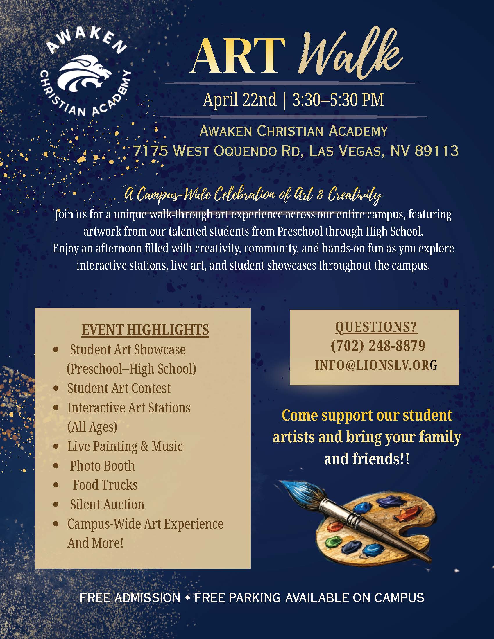 Artwork from Preschool through 12th Grade will be displayed throughout the campus as we highlight the artistic achievements of our Awaken Christian Academy students.